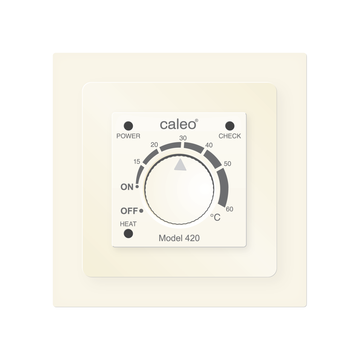 Терморегулятор CALEO 420 - встраиваемый, аналоговое управление, 3,5 кВт. Выдерживает перепады напряжения от 100 до 240 В и отлично подойдет для регионов, где возможны перепады напряжения. Модель обладает простым интуитивно понятным аналоговым управлением, что делает ее незаменимой для покупателей пожилого возраста.
